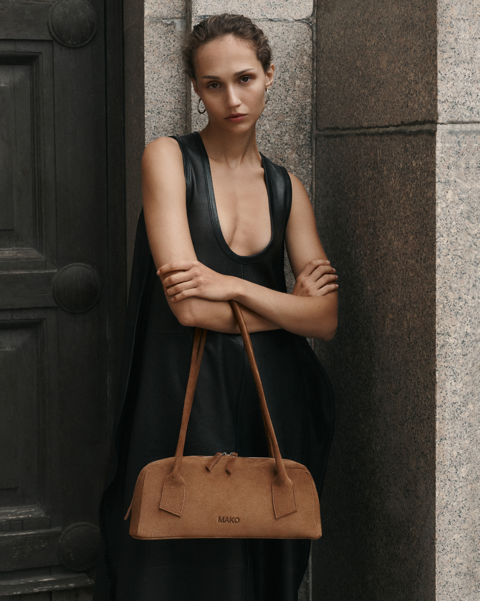 Bowling Bag ze skóry licowej w głębokim odcieniu brązu oraz zamszowa Pillow Bag w szlachetnym kolorze ochra brown to bestsellery Mako, które zyskały nowe oblicze. Miejski charakter kolekcji podkreślają także Long Leather Boots, skórzane bikery z luźną cholewką, które świetnie będą wyglądać z wełnianymi mini.