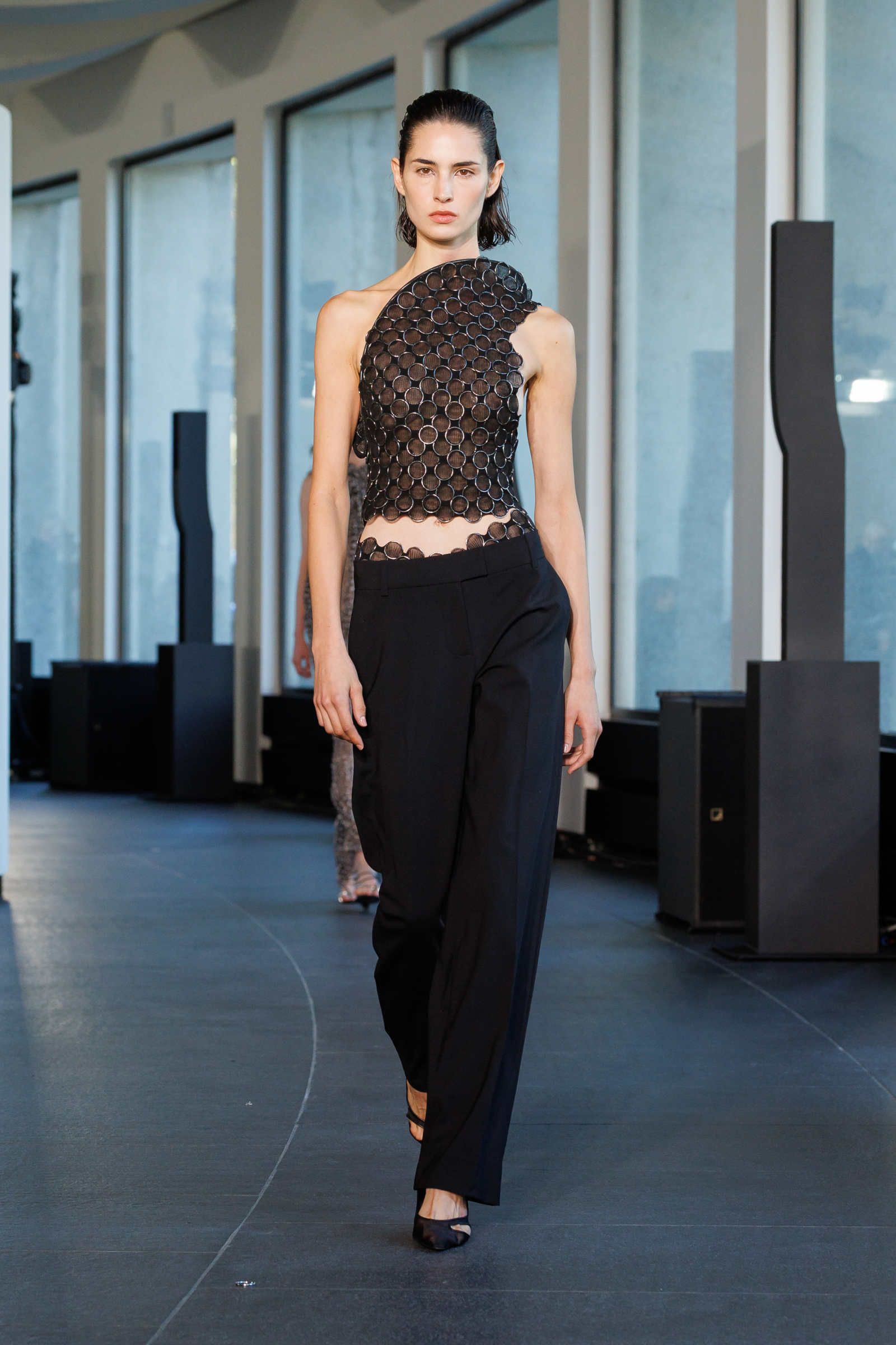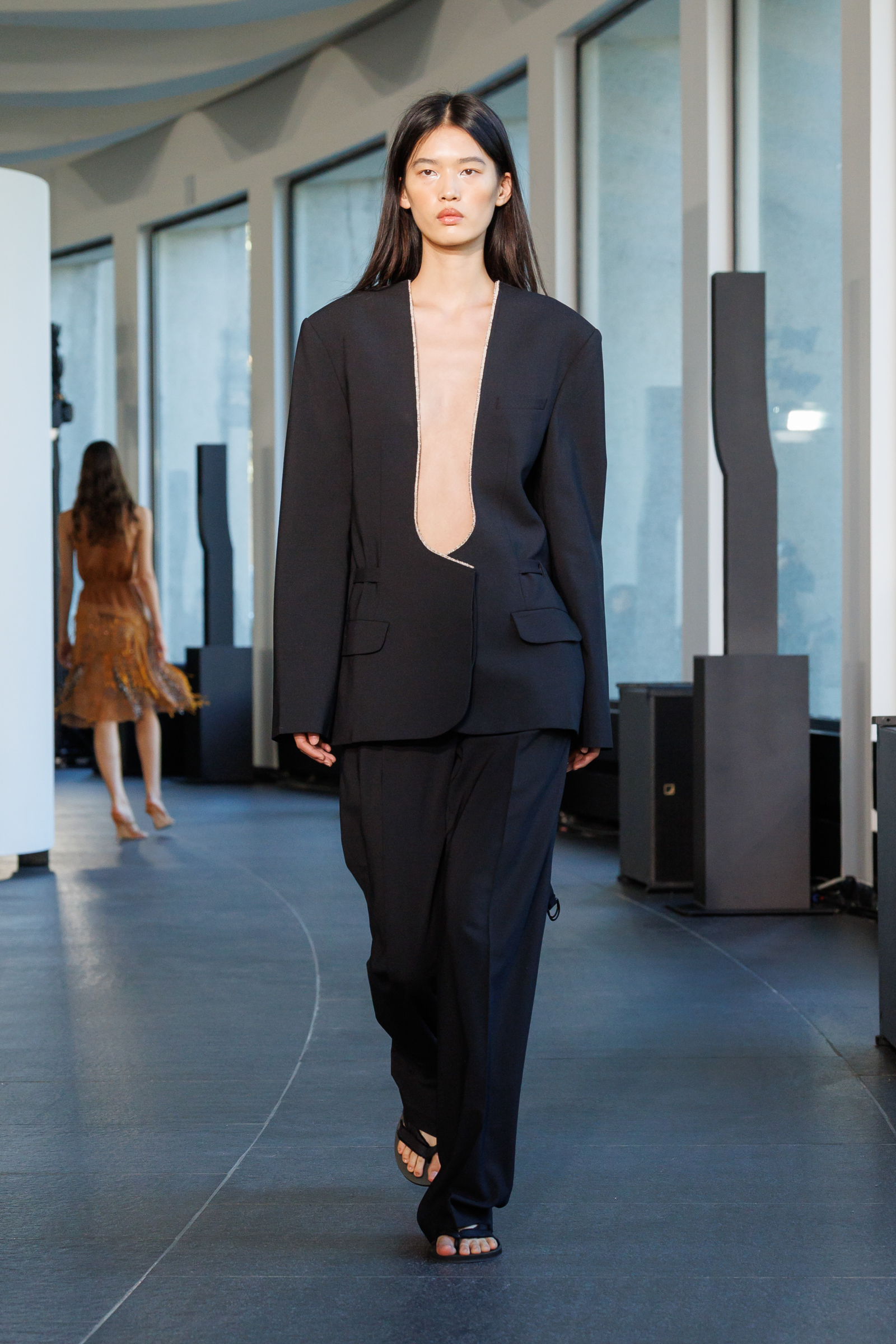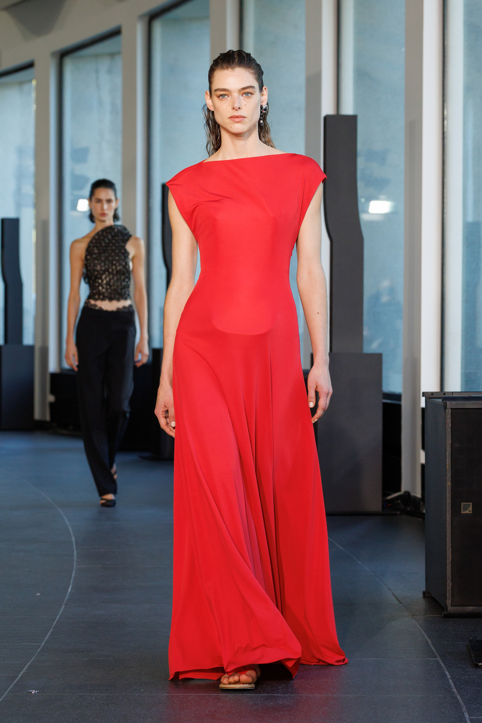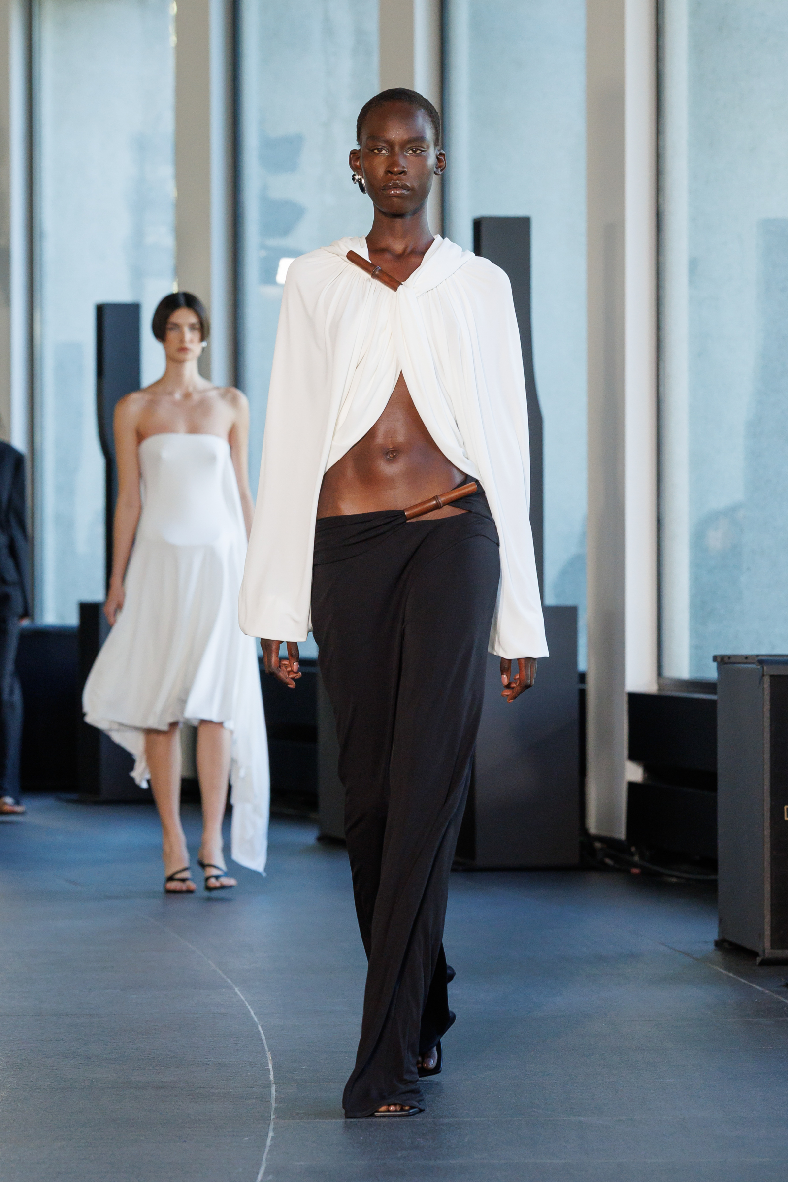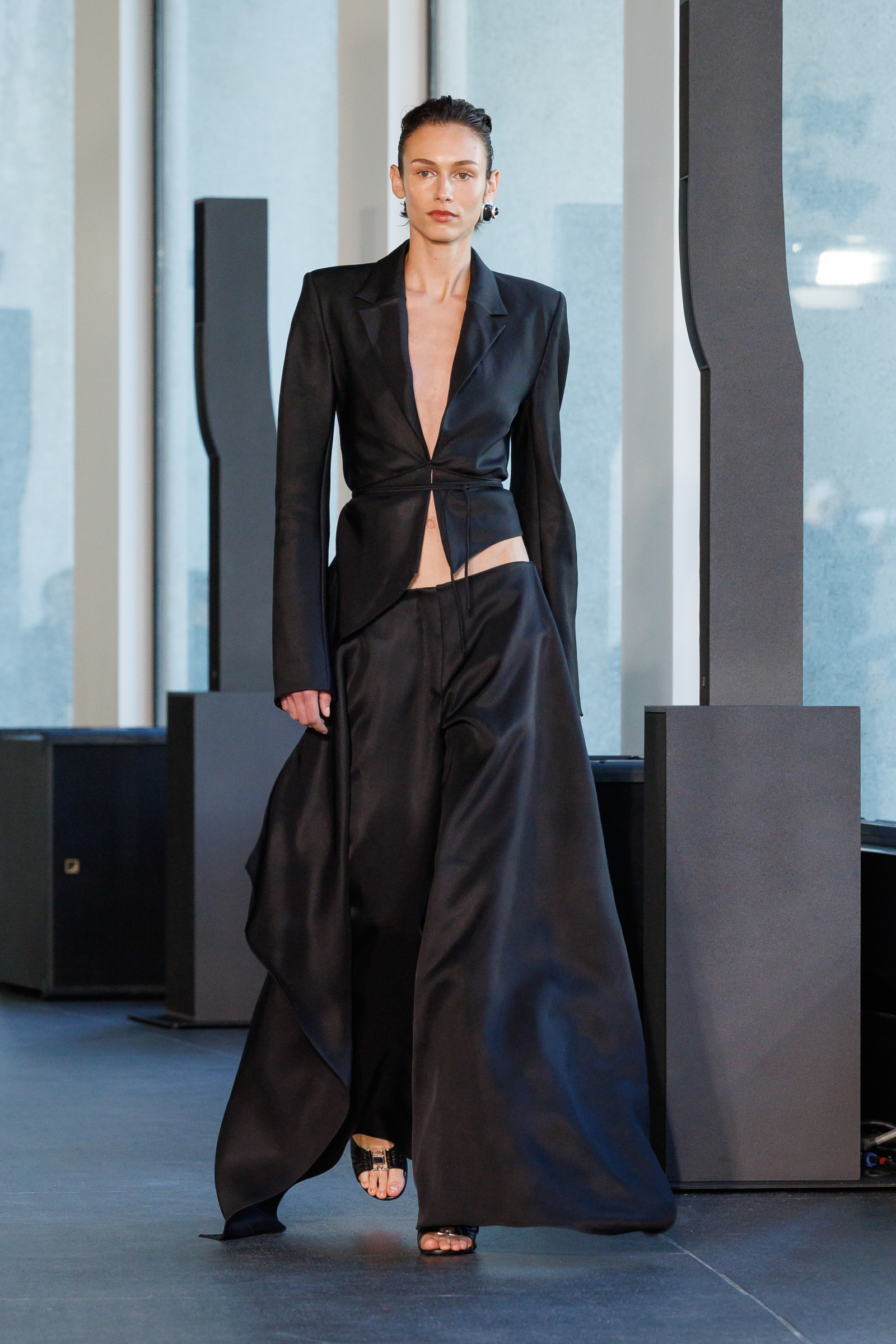 Choć Christopher Esber słynie z okazałych sukienek, po które it-girls chętnie sięgają nie tylko w wakacje, w kolekcji na wiosnę-lato 2026 równie chętnie lansuje spodnie. Australijczyk jest przy tym wierny jednemu fasonowi – na przyszły sezon proponuje luźne modele z szeroką, zamaszystą nogawką.