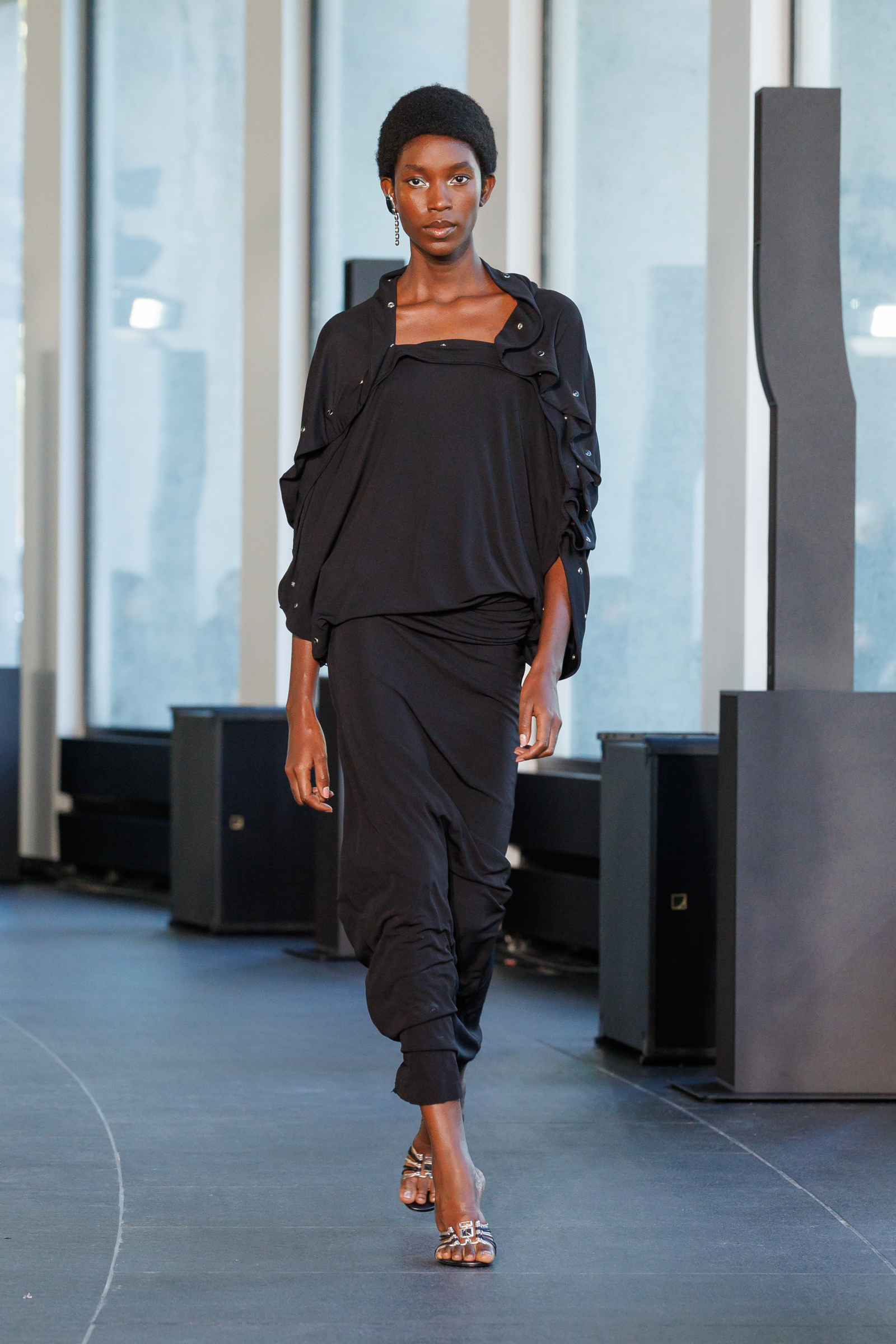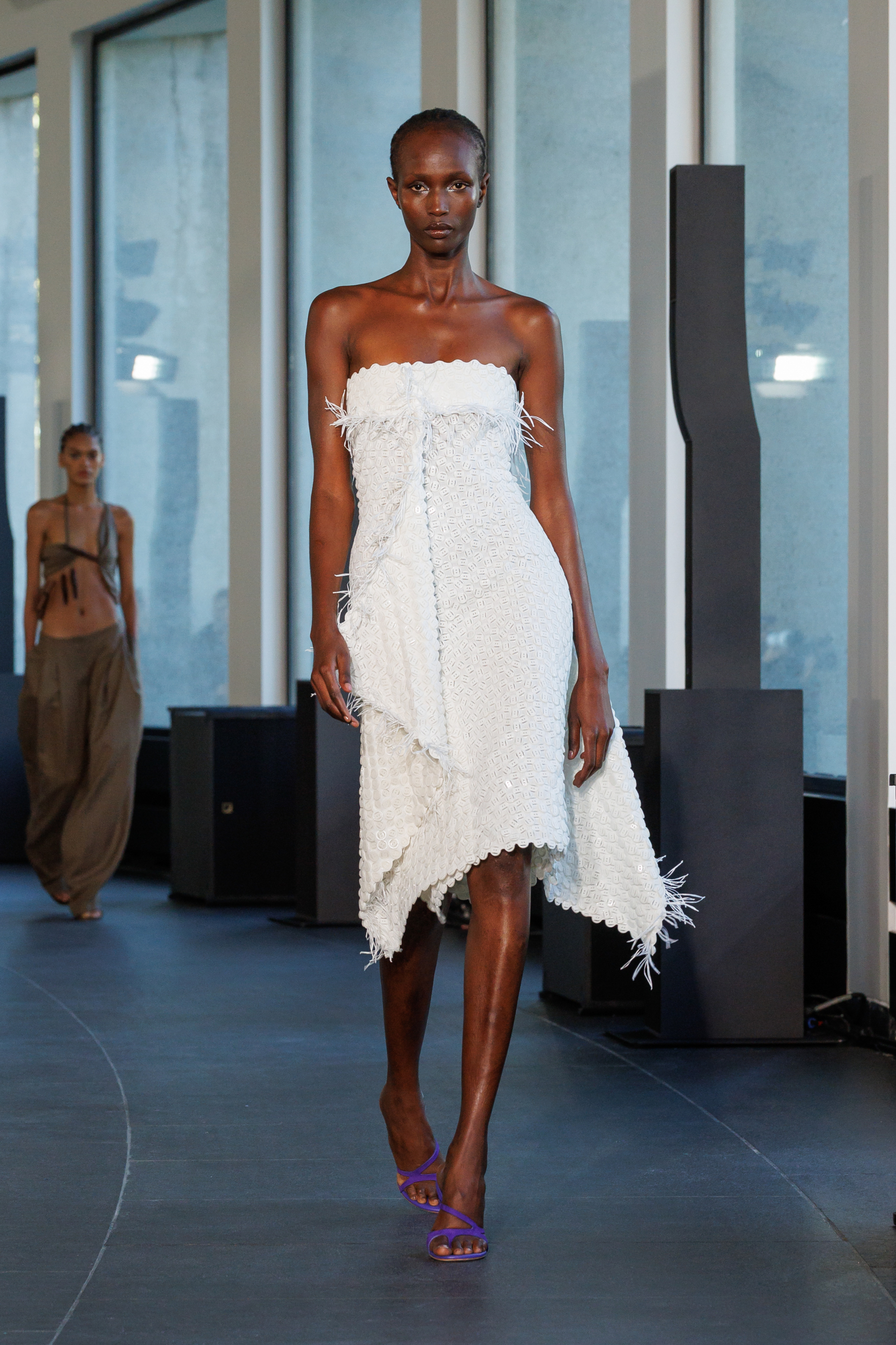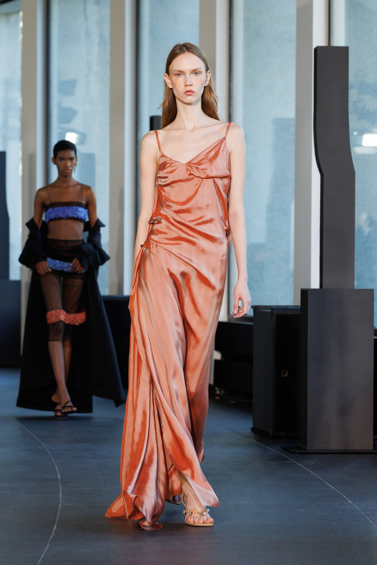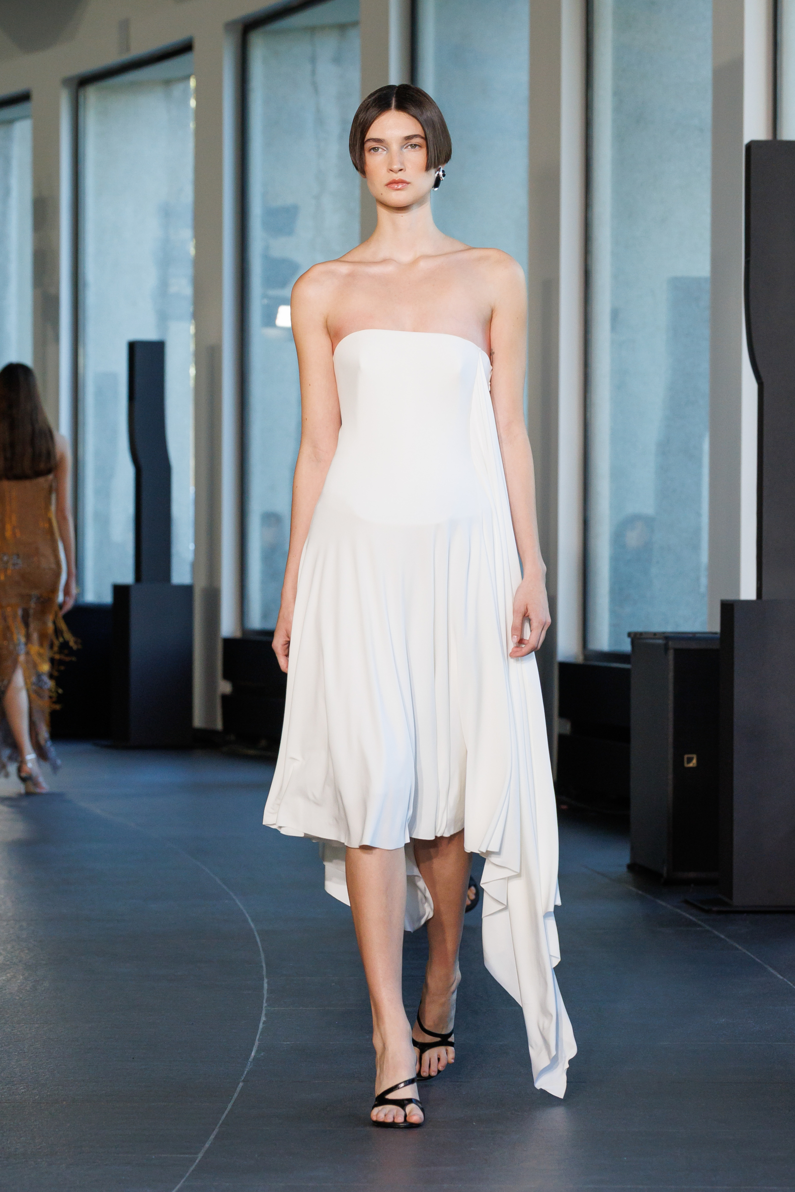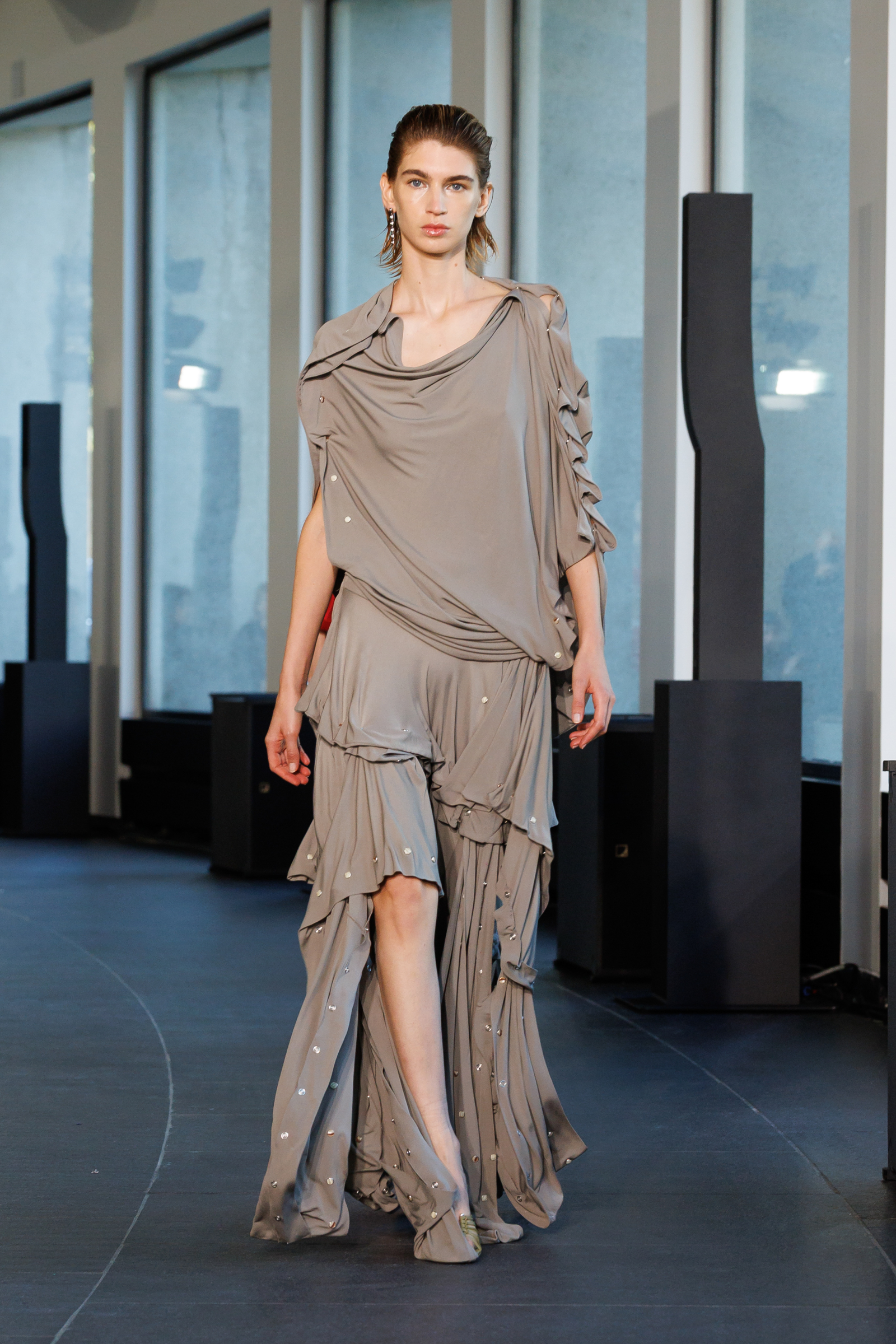 Choć Christopher Esber słynie z okazałych sukienek, po które it-girls chętnie sięgają nie tylko w wakacje, w kolekcji na wiosnę-lato 2026 równie chętnie lansuje spodnie. Australijczyk jest przy tym wierny jednemu fasonowi – na przyszły sezon proponuje luźne modele z szeroką, zamaszystą nogawką.