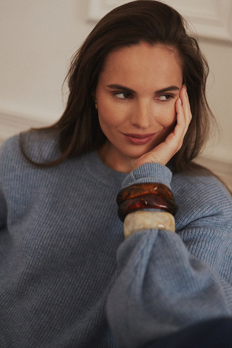 Z męskiego krawiectwa czerpie też brązowa marynarka, którą dla przełamania Magnon proponuje nosić w tym sezonie ze spódniczką mini. – Ma typowe dla męskiej marynarki klejenia i sztywniki. Leży fantastycznie – opisuje przy okazji wyliczania, co z nowej kolekcji chciałaby mieć w swojej własnej szafie. – To pierwszy nasz sezon, kiedy kolekcja Madelle jest w stu procentach spójna z tym, co lubię nosić na co dzień. W tym sezonie nie ma modelu, którego nie nosiłabym z przyjemnością. W tej kolekcji widać dość mocną zmianę charakteru naszych kolekcji. Choć dziewczyna Madelle wciąż ma w sobie charakterystyczną subtelność, stała się mocniejsza, bardziej modowa i wyrazista. Dalej ma kokardy we włosach i mięciutkie sweterki, ale dziś to raczej dodatek do bardziej klasycznej bazy – opisuje. Idealnym połączeniem tych dwóch pierwiastków w wyjątkowej wersji jest szara garsonka z długą spódnicą i taliowaną marynarką, luźno inspirowana lookiem mamy Magnon z młodości. – Moja mama bardzo wzruszyła się, gdy zobaczyła te zdjęcia i modele. Znalazła w nich wiele elementów, które nosiła przed laty – wspomina Magda. Warto jednak podkreślić, że to nie cytaty z przeszłości, a dopracowane i zmienione w kolorach, proporcjach i detalach rzeczy, których w takiej formie i jakości ze świecą szukać w drugim obiegu.
