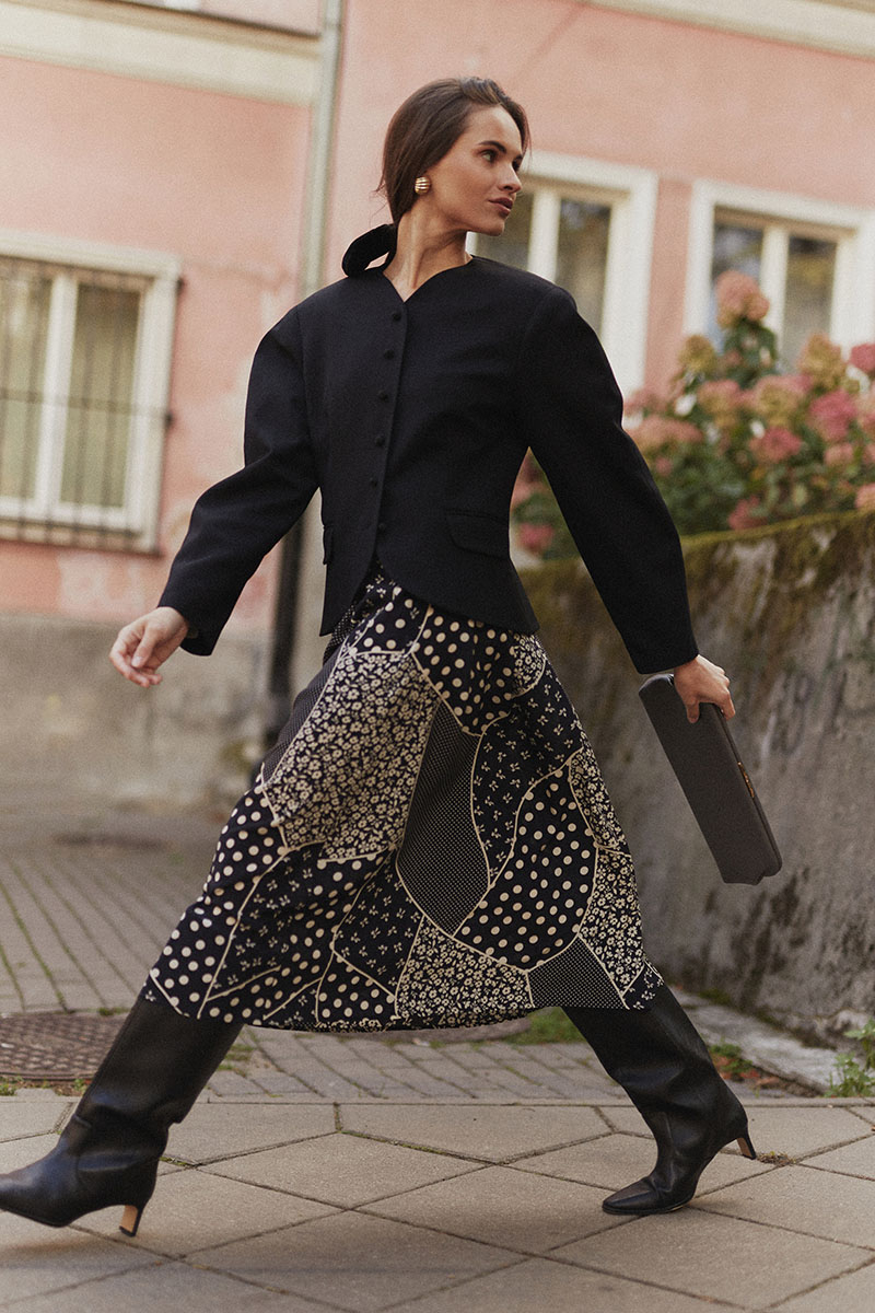 Ten sezon dla Magdaleny Magnon, założycielki Madelle, to prawdziwa podróż sentymentalna. – Wszystko zaczęło się od wizyty u moich ukochanych krawcowych, pani Ani i pani Hani. Tego dnia spontanicznie zaczęłam przeglądać ich archiwum starych magazynów z wykrojami. Mają sporą kolekcję polskich i niemieckich pism z lat 80. i 90. o różnych zabawnych tytułach. Zaczęłam je kartkować i uderzyło mnie to, jak wiele z publikowanych tam stylizacji, zdjęć, pięknych rysunków żurnalowych totalnie do mnie trafia – opowiada. Podczas lektury zdała sobie sprawę, że to te dekady zdefiniowały jej osobisty styl.