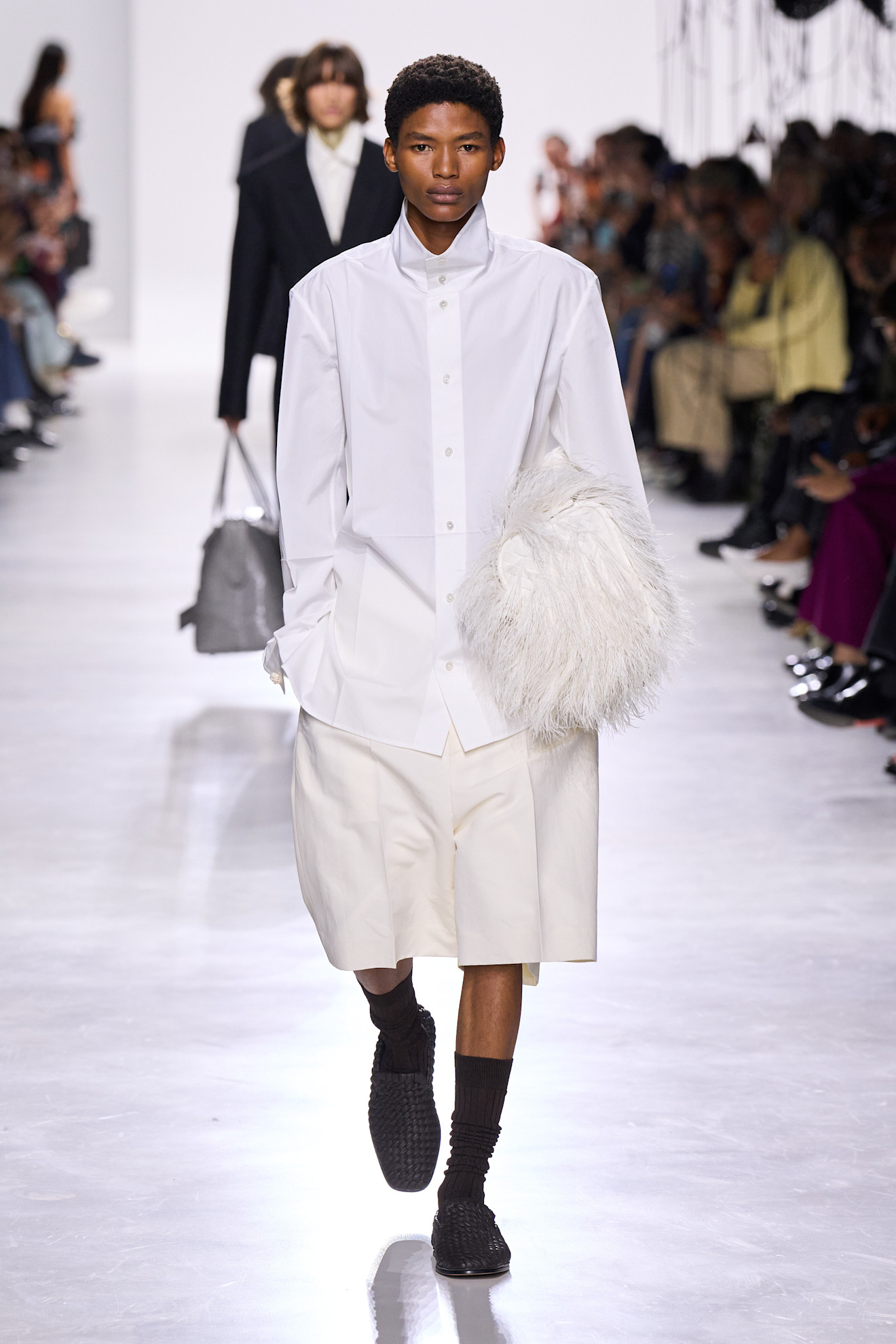 Projekty z debiutanckiej kolekcji Trotter będą pełnić rolę zarówno małych dzieł sztuki, jak i komercyjnych hitów. Przebojami wiosny staną się zapewne spódnice z połyskujących frędzli noszone z dopasowanymi sweterkami z wszytymi poduszkami w ramionach, fenomenalne trencze o sztywnej konstrukcji, gigantyczne kufry z plecionki intrecciato i buty: chodaki z wygiętym obcasem, lakierowane czółenka typu glove shoes i miękkie mokasyny w wersji zabudowanej oraz bez pięty. Te ostatnie wiosną 2026 roku będziemy nosić dokładnie jak modelki na pokazie Bottegi Venety – z sukienkami midi i maxi o różnych fasonach.