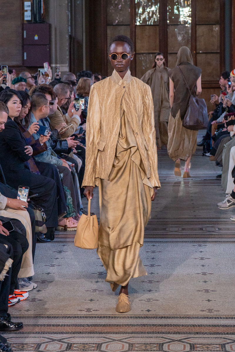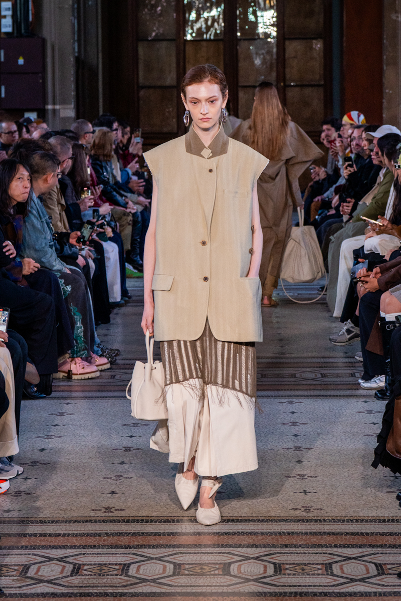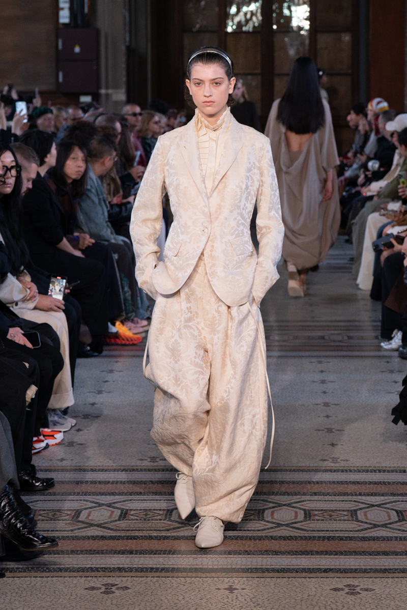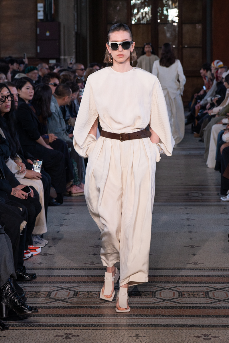 W prezentacji kolekcji Umy Wang na sezon wiosna-lato 2026 dało się wyraźnie odczuć, że zobaczymy pokaz subtelny i przemyślany, w którym to ubrania będą grały pierwsze skrzypce. Cisza panująca w dawnej industrialnej przestrzeni i dyskretne światło wpadające przez okiennice bardziej niż typowy przepych paryskich wnętrz przywodziły na myśl atmosferę ascetycznej świątyni. Nawet publiczność w odróżnieniu od innych pokazów zamiast typowego gwaru wybrała ciszę.