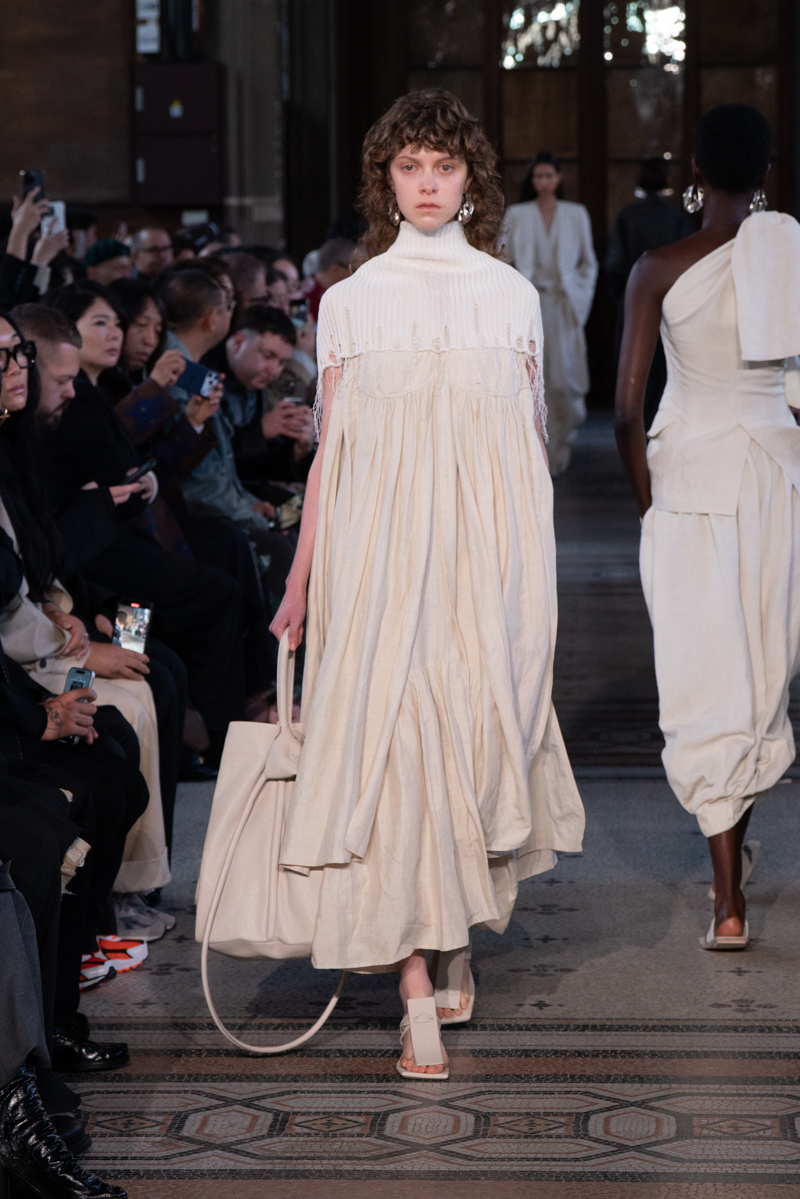 Kolekcja Umy Wang na sezon wiosna-lato 2026 to opowieść o materiale, czasie i geście. Opowieść subtelna, konsekwentna, wymagająca od widza obecności. Projektantka po raz kolejny udowodniła, że prawdziwa kreacja rodzi się pomiędzy surowością a miękkością, pomiędzy ciszą a sugestią.